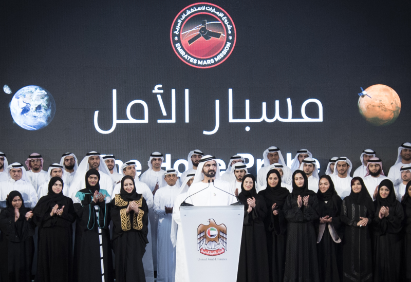 وقال أبو الغيط “والحق فإن هذا الانجاز أيضاً هو نتيجة طبيعية لمنهج الدولة في تشجيع الابتكار والاعلاء من قيمة التخطيط والرؤية البعيدة، وعدم الاكتفاء بأسئلة الزمن الحاضر، وانما الانغماس في أسئلة المستقبل وتحدياته… فهذا المنهج خلق لنا نموذجاً ملهماً وموضوعاً للدرس والتدبر من كافة الأمم الناهضة، الساعية إلي التميز… كما أنه اتاح المجال لوصول العرب إلي المريخ”.