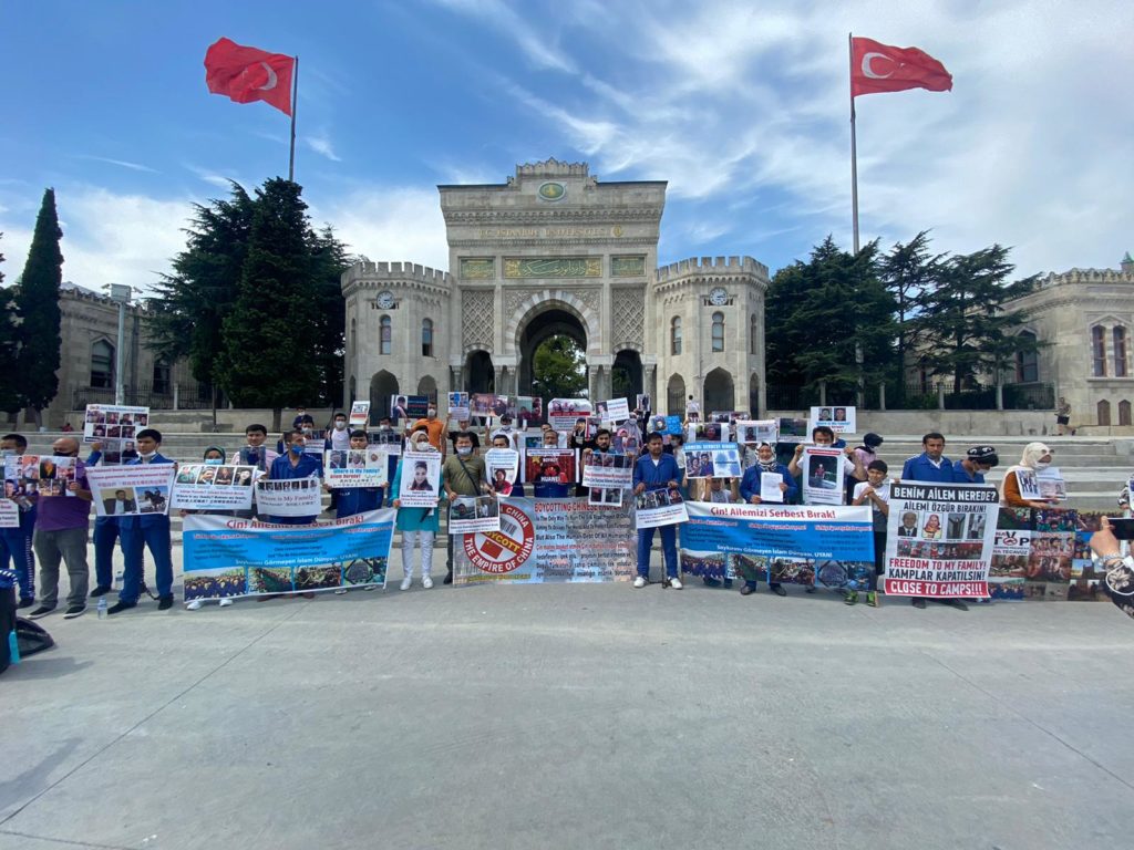 نظم الأويغور وقفة احتجاجية في ميدان بايزيد بالشطر الأوروبي من إسطنبول، مقيدين أيديهم وأرجلهم بالسلاسل للتعبير عن المعاناة التي تتعرض لها عائلاتهم، ورفعوا صورًا لبعض أقاربهم الذين أوضحوا أنهم فشوا في الوصول إليهم.