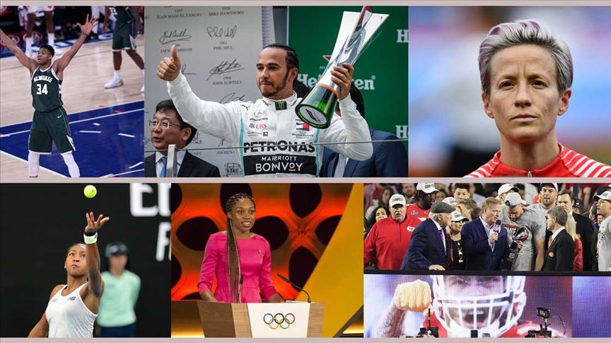ومن السيدات: نعومي أوساكا لاعبة التنس اليابانية، أليسون فليكس العداء الأمريكي، وميجان رابينو لاعبة كرة القدم الأمريكية، ومايا موري لاعبة كرة السلة الأمريكية، أما الرياضيين الذكور: قائد سيارات فورميلا وان البريطاني لويس هاميلتون، ولاعب كرة القدم الأمريكي باتريك ماهوميس، ولاعب كرة السلة اليوناني جيانيس أنتيتكونمبو، ولاعب كرة السلة الأمريكي السابق دوياني وادي.