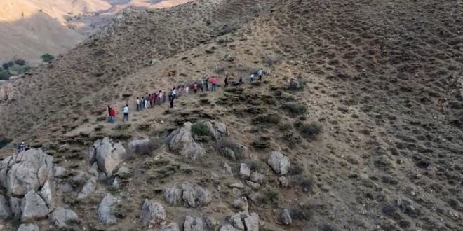 طلاب بلدة يوكساك أوفا في ولاية حكاري، ذات الأغلبية الكردية، في جنوب شرق تركيا، يستمعون يوميًا إلى دروسهم المدرسية على قمة تل بارتفاع 2500 متر.