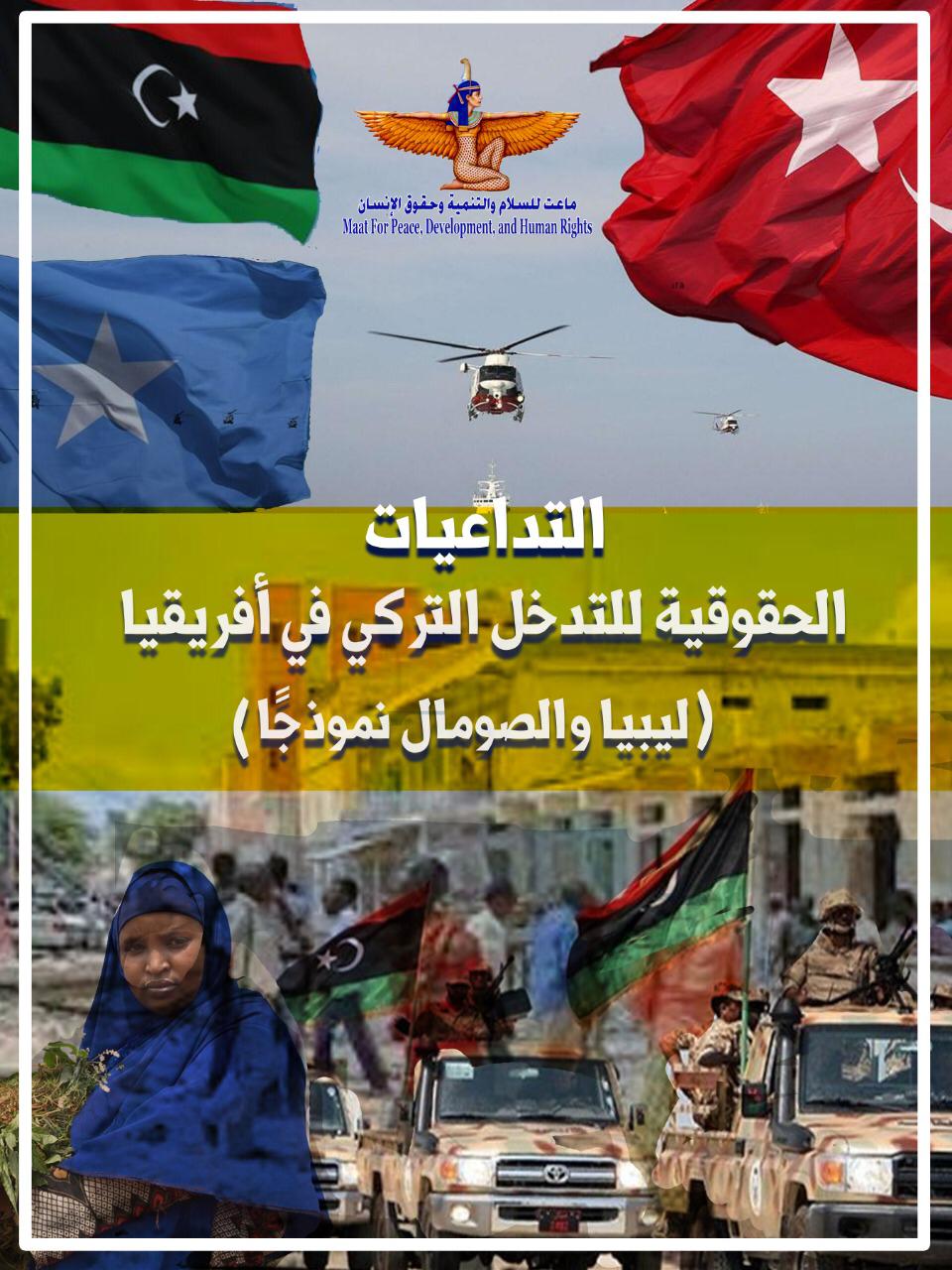 الدراسة التي أصدرتها مؤسسة ماعت للسلام والتنمية وحقوق الإنسان تحت عنوان: “التداعيات الحقوقية للتدخل التركي في أفريقيا.. ليبيا والصومال نموذجًا” تتبعت ما تقوم به تركيا في ليبيا من إمدادات التسليح، ودعم ميليشيات مسلحة داخل ليبيا، وارسال مرتزقة سوريين إلى ليبيا.