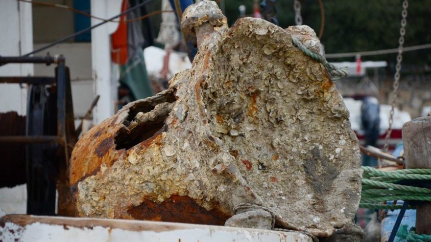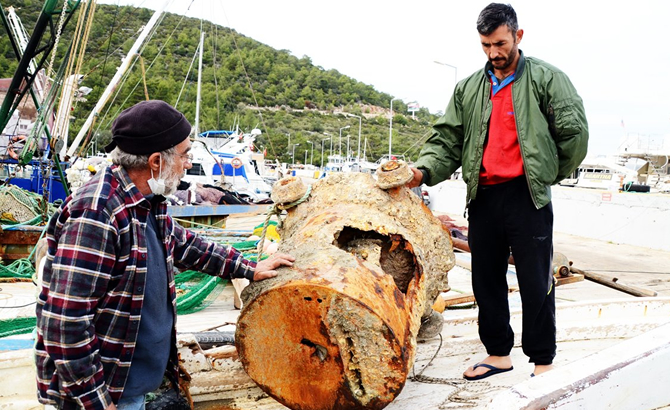 وعلق لغم يعود للحرب العالمية الأولى، في شباك الصيادين في مدينة بودروم بولاية موغلا الساحلية جنوب تركيا.