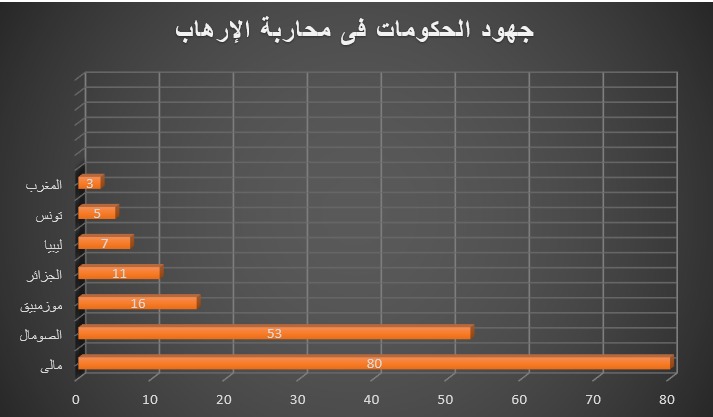 وفي إقليم غرب أفريقيا جاءت دولة نيجيريا كثاني الدول تضرراً فى القارة وذلك بعد وفاة ما يقرب من 126 شخص بسبب مذابح جماعة بوكو حرام. ومن المؤسف أن نرى دولة موزمبيق فى المرتبة الثالثة بعد أن وقع فيها 70 حالة وفاة. ومن جانب أخر، جاءت مالى بمساعدة القوات الفرنسية فى مقدمة الدول وفقاً لجهودهاً في محاربة الإرهاب حيث نجحت فى إسقاط حوالي 81 عنصراً إرهابياً خلال هذا الشهر.