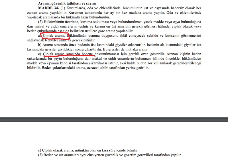 أنقرة (زمان التركية) -ظهرت وثيقة رسمية تفضح اتباع السلطات التركية، التفتيش العاري، بالسجون ما يدحض نفى مسؤولو حزب العدالة والتنمية الحاكم وجود هذه الممارسة.