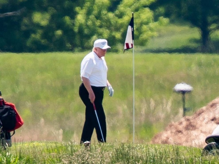 وفي صور نشرتها DailyMail، يمكن رؤية الرئيس السابق مرتديا قميص غولف أبيض اللون في ملعب ويست بالم بيتش الذي يرتاده بشكل معتاد منذ أن انتقل للسكن في منتجع Mar-a-Lago في ولاية فلوريدا عقب انتهاء ولايته في 20 يناير الماضي.