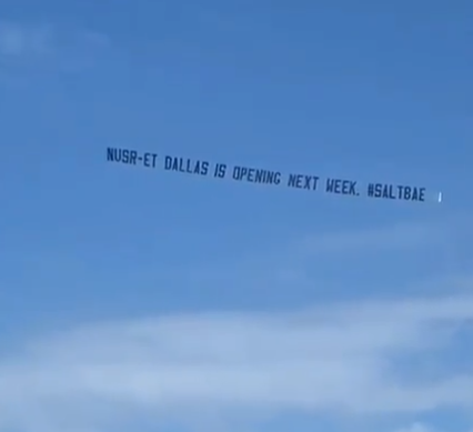 جوكتشه نشر مقطع فيديو على حسابه الرسمي على موقع التواصل الاجتماعي انستجرام، ظهرت خلاله لوحة تجرها طائرة مكتوب عليها “nusr_et سيفتتح في دالاس الأسبوع القادم”.