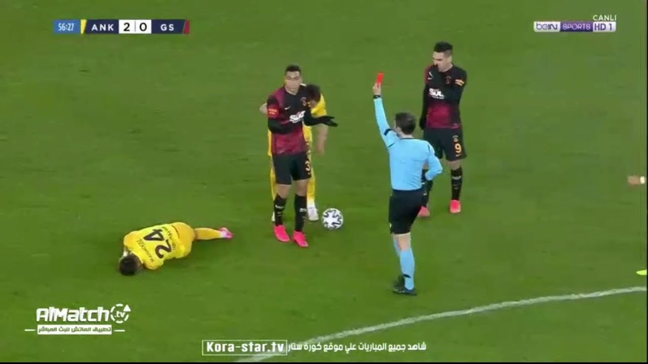 وأشهر الحكم البطاقة الحمراء في وجه مصطفى محمد، في الدقيقة 57، بعد ضربه بمرفقه على مستوي الوجه، لاعب أنقرة غوجو، إبراهيم أكتا، خلال تنافسهما على إحدى الكرات في منتصف الملعب.
