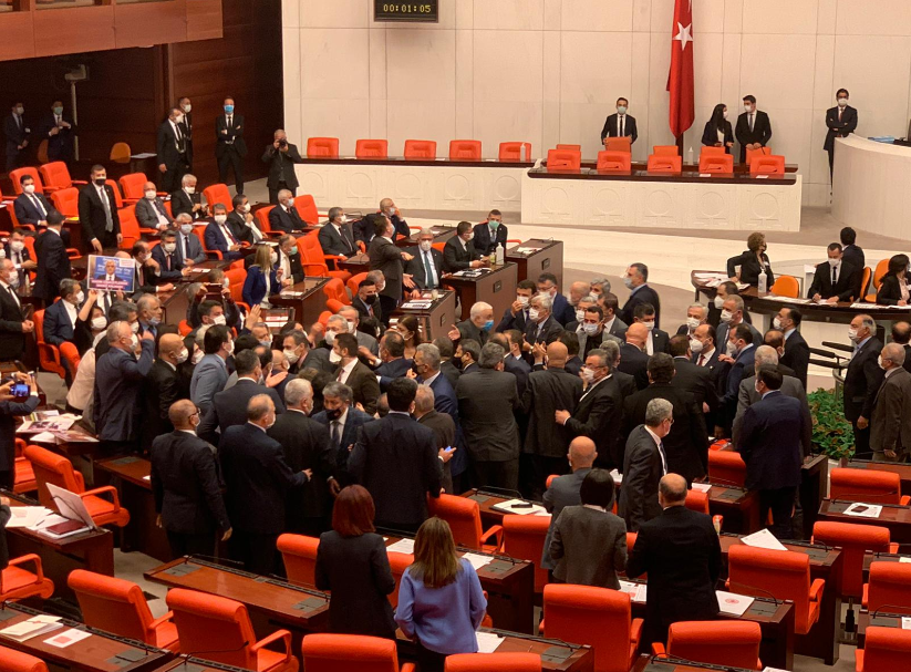 ومن جانبه نشر نائب حزب الشعب الجمهوري، باريش ياركاداش، تغريدة عبر تويتر ذكر خلالها أن حزب العدالة والتنمية الحاكم ينفذ تعليمات رئيس حزب الحركة القومية، دولت بهجلي، قائلا: “حزب العدالة والتنمية الذي أدخل الشرطة إلى أروقة البرلمان يقضي على مستقبل تركيا لكي يمكث في السلطة لمدة أطول، ولا يمكن أن يسير الأمر على هذا المنوال”.