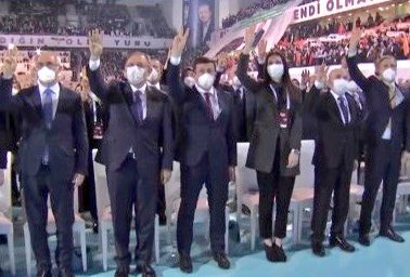اليوم الأربعاء، خلال المؤتمر العام السابع لحزب العدالة والتنمية في أنقرة، ظهر حمزة داغ نائب رئيس حزب العدالة والتنمية، وهو يرفع علامة النصر بدلا من إشارة رابعة التي ترمز إلى اعتصام جماعة الإخوان في ميدان “رابعة العدوية” في مصر عام 2013.