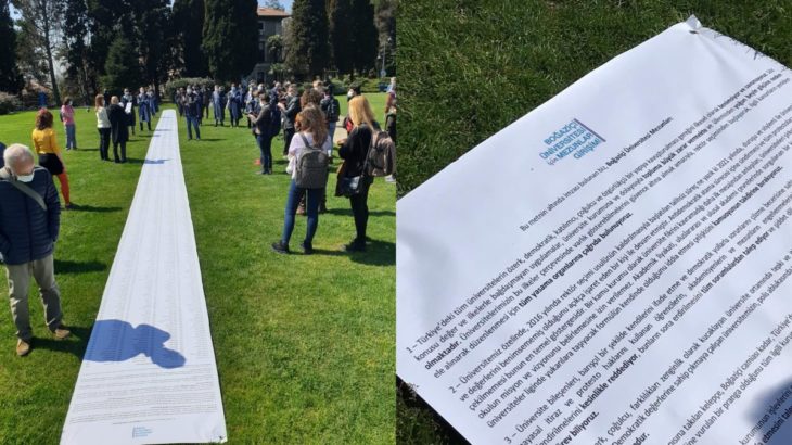 وأكد الموقعون، الذين التقوا في جامعة البوسفور، أن أبناء الجامعة لديهم القدرة على التعبير عن أنفسهم بشكل سلمي وحل مشاكلهم بالوسائل الديمقراطية، مشيرين إلى أن الطلاب والأكاديميين والخريجين يمارسون حقهم الدستوري في الاحتجاج ضد تعيين رئيس جامعتهم.