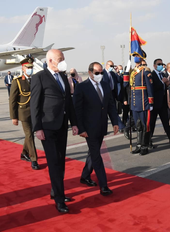 الرئيس المصري عبد الفتاح السيسي، عبر عن ترحيبه بنظيره التونسي الرئيس قيس، وقال: أغتنم هذه المناسبة لأعرب عن تقديرنا البالغ للروابط التاريخية العميقة التي تجمع بين مصر وتونس وبين شعبيهما الشقيقين.
