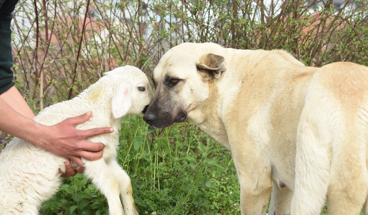 بورصة (زمان التركية)ــ لجأ حَمَل صغير في إحدى مراعي ولاية بورصة شمال غرب تركيا إلى كلبة الرعي لسد حاجته من الحليب.