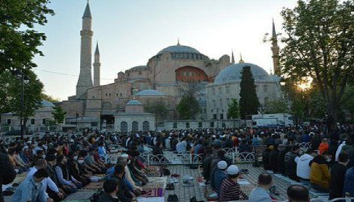 اسطنبول (زمان التركية) – شهد مسجد آيا صوفيا في اسطنبول، اليوم الخميس، إقامة صلاة عيد الفطر للمرة الأولى منذ 87 عاما، بعد إعادة افتتاحه في شهر يوليو من العام الماضي.