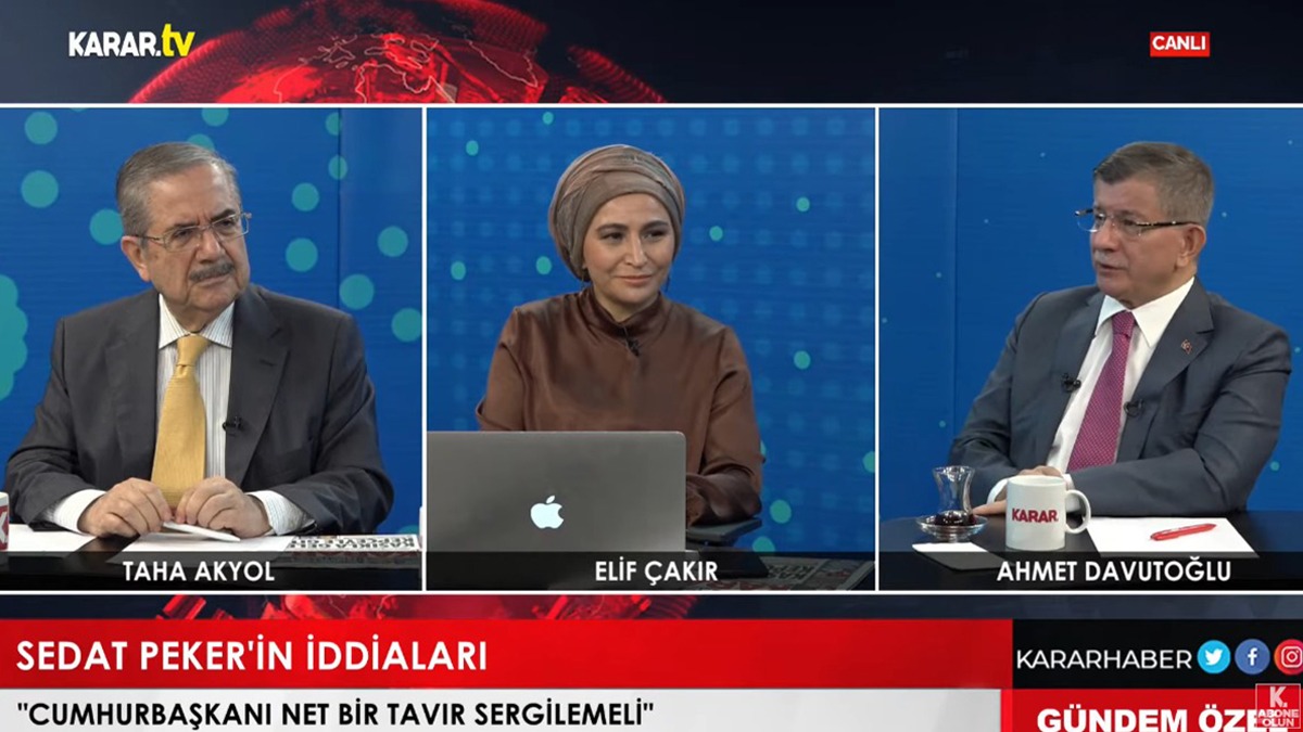 داود أوغلو قال ردًا على أسئلة طه أكيول وأليف شاكر من صحيفة (قرار) إن أردوغان “انفصل عن الأمة، وإذا كان هناك نقص في الولاء، فمعنى هذا أن هناك خيانة، وهذه هي خيانة أردوغان للقيم”.