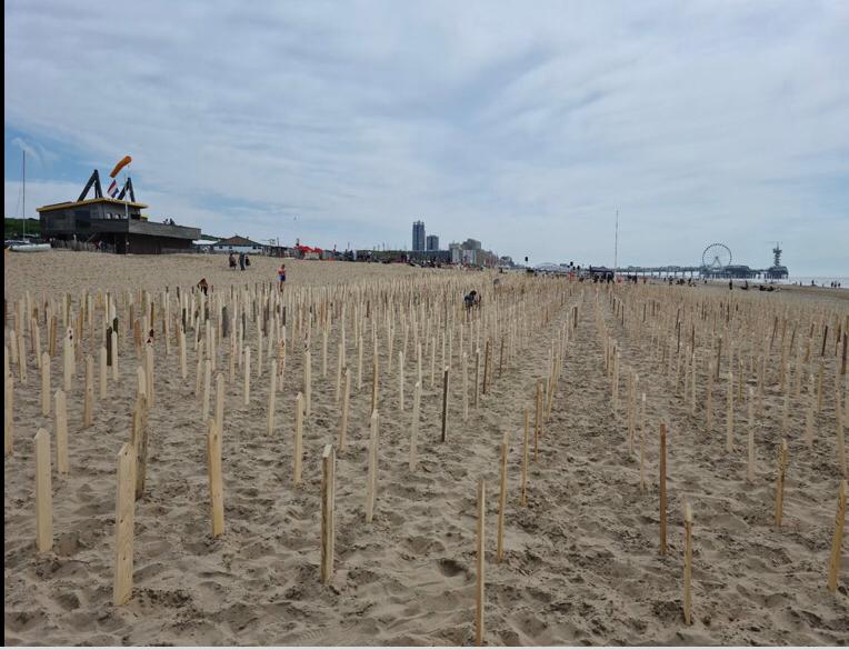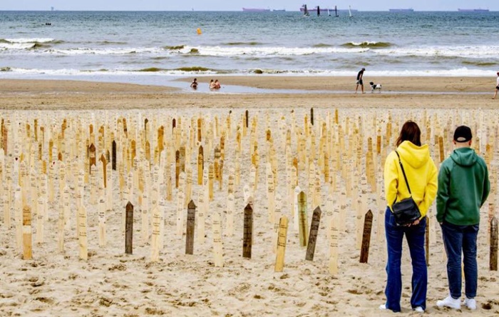 على شاطئ Scheveningen في لاهاي بهولندا، تم إعداد نصب تذكارية رمزية، لآلاف الأشخاص الذين اضطروا إلى مغادرة بلادهم وفقدوا حياتهم خلال رحلتهم الطويلة، كجزء من اليوم العالمي للاجئين.