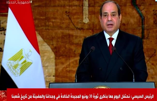 جاء ذلك خلال كلمة الرئيس المصري اليوم الأربعاء، بمناسبة مرور الذكرى الثامنة لثورة 30 يونيو.