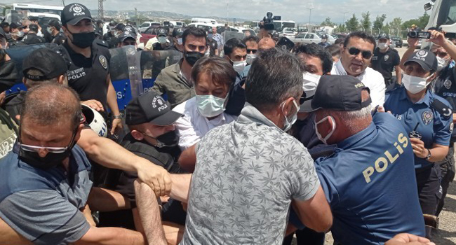 ولكن خلال الوقفة الاحتجاجية تدخلت قوات الشرطة، واعتقلت 4 أشخاص، بينهم صالح عمر فاروق جرجرلي أوغلو، نجل النائب المعتقل.