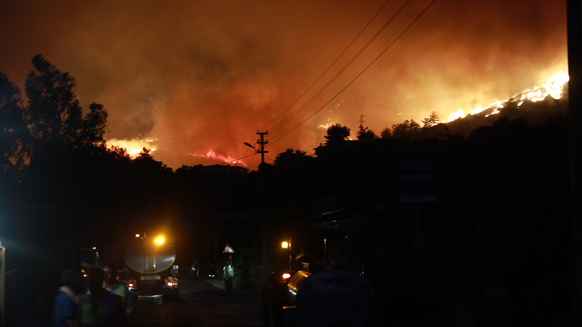 عمدة بلدية ميلاس، محمد توكات، حذر ليلا من أن ألسنة حرائق الغابات وصلت إلى محطة الطاقة الحرارية في البلدة.