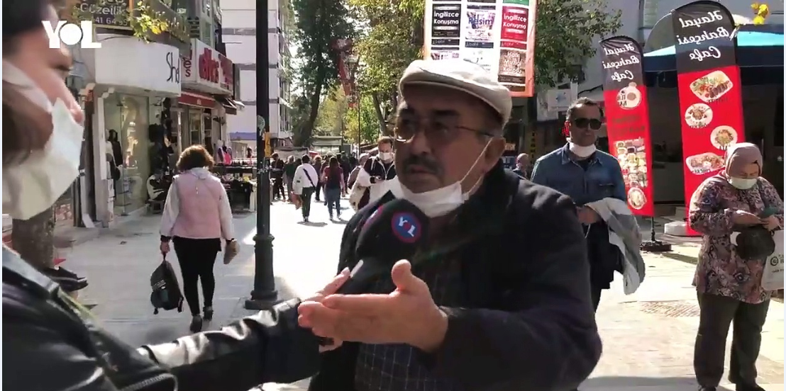 مواطن تركي استنكر خلال حديث مع مراسل قناة “يول تي في” التركية، قول الرئيس إن المواطنين راضون عن الاقتصاد.