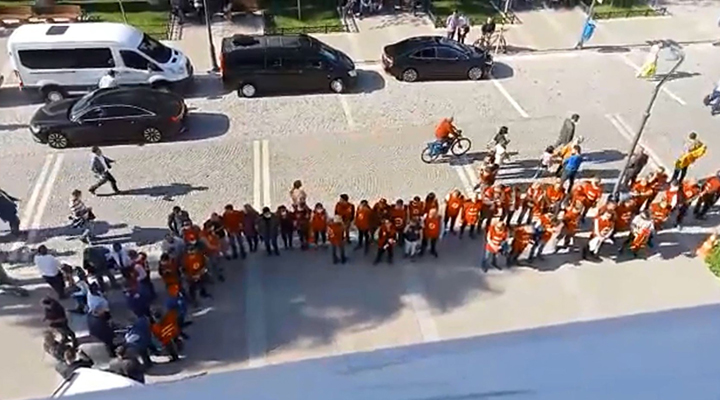 وفي اثناء مرور موكب وزير الداخلية سليمان صويلو من الساحة بعد أداء الصلاة، أدار العمال ظهورهم للموكب.