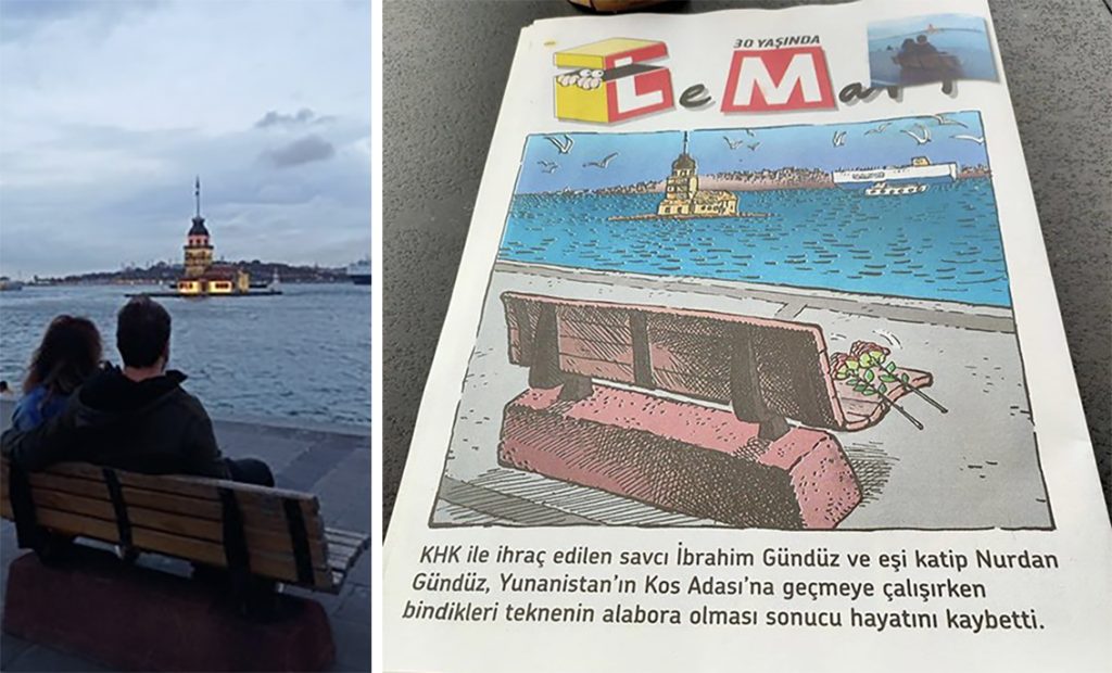 أنقرة (زمان التركية) – خصصت مجلة “لومان” التركية الساخرة أحدث أعدادها لرصد معاناة أحد ضحايا الفصل التعسفي والملاحقات الامنية في تركيا، وهو المدعي العام المفصول تعسفيا من عمله إبراهيم جوندوز، وزوجته نوردان، الذين انتهى بهما المطاف غرقا أثناء محاولة عبور بحر إيجة للجوء إلى اليونان.
