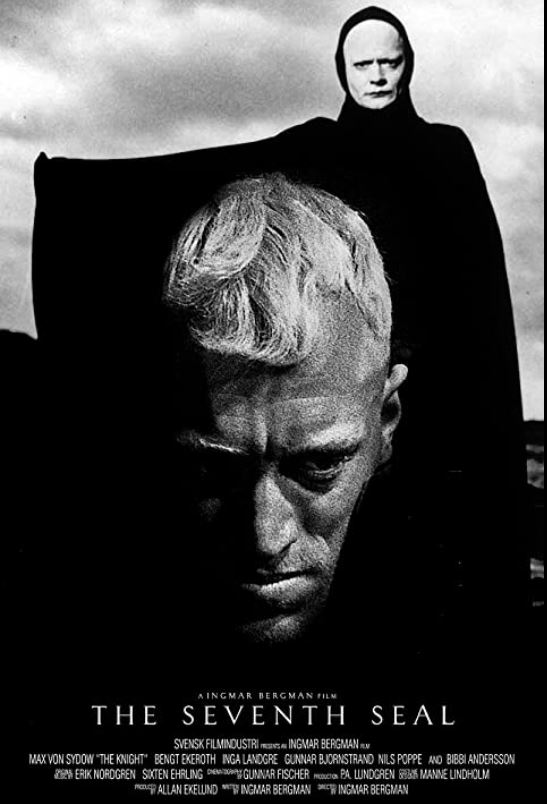 ففي ذاك الزمن، لم يخل الأمر من خيالات كاتب حولها المخرج العالمي إنجريد برجمان إلى عمل سينمائي رائع باسم “الختم السابع The Seventh Seal“.. ففي منتصف القرن الرابع عشر، يعود “أنطونيوس” قائد جيش السويد المشارك في الحروب الصليبية مع مساعده “جينيس” بعد عشر سنوات من المعارك إلى الوطن، وقد نجا الرفيقان طوال تلك الفترة بأعجوبة من ويلات الحرب إلا أنهما عادا إلى بلدتهما ليكتشفا انتشار وباء قضى على أجساد البشر وجعل البلاد كلها مقفرة ومظلمة من شدة البؤس، فالدمار هو الوصف الأبرز للوطن الموبوء.