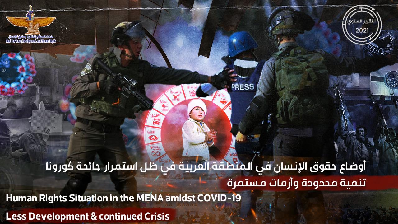 التقرير الصادر عن مؤسسة ماعت للسلام والتنمية وحقوق الإنسان، بعنوان ” أوضاع حقوق الإنسان في المنطقة العربية في ظل استمرار جائحة كورونا.. تنمية محدودة وأزمات مستمرة “، يرصد ويحلل تطورات ووقائع حالة حقوق الإنسان في المنطقة العربية خلال عام 2021، مع التركيز على المأساة التي تعيشها وما زالت المجتمعات العربية، جراء استمرار انتشار جائحة كورونا، والواقع الصعب الذي عانت منه ولا تزال أوضاع حقوق الإنسان الأساسية في ظل جائحة كوفيد – 19.