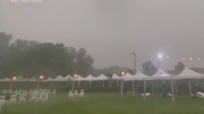 وأظهر التسجيل المصور الأمطار تهطل بعزارة، في مكان يزعم أنه كان سيشهد حفل طهور، نجل المدير العام لهيئة الأرصاد، فولكان موتلو جوشكون.