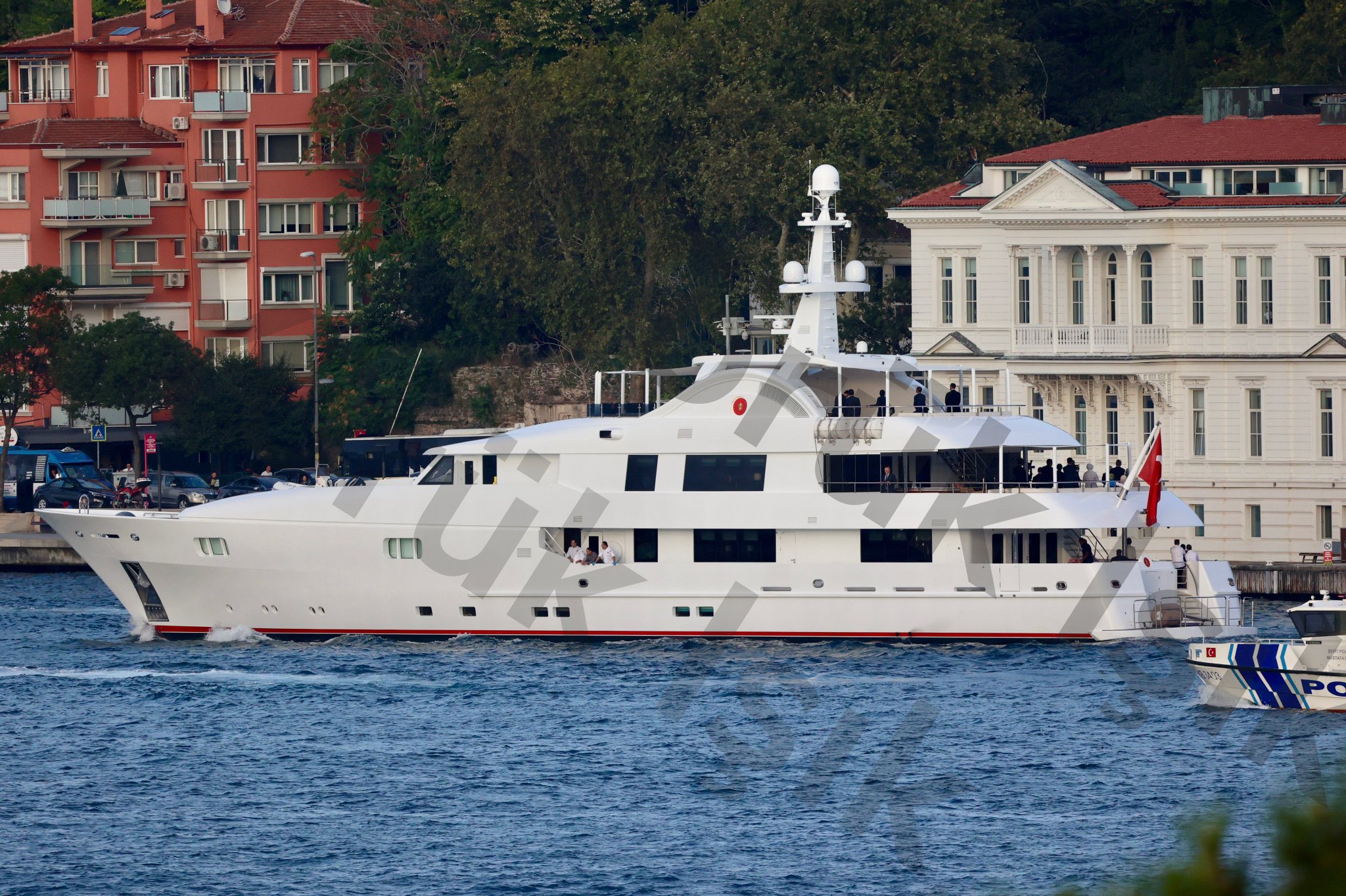 كانت هناك مجموعة كبيرة من الأشخاص باليخت تحميها شرطة السواحل، لكن لم يتم الكشف عما إذا كان الرئيس التركي رجب طيب أردوغان على متن اليخت.