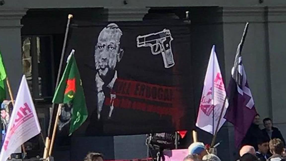 وفي مظاهرة “لا” التي أقيمت في ساحة البرلمان أمام مبنى البرلمان الاتحادي في العاصمة السويسرية برن، في 25 مارس 2017، رفع ناشطون يساريون صورة أردوغان بمسدس صوب رأسه ونصها “اقتلوا أردوغان”.