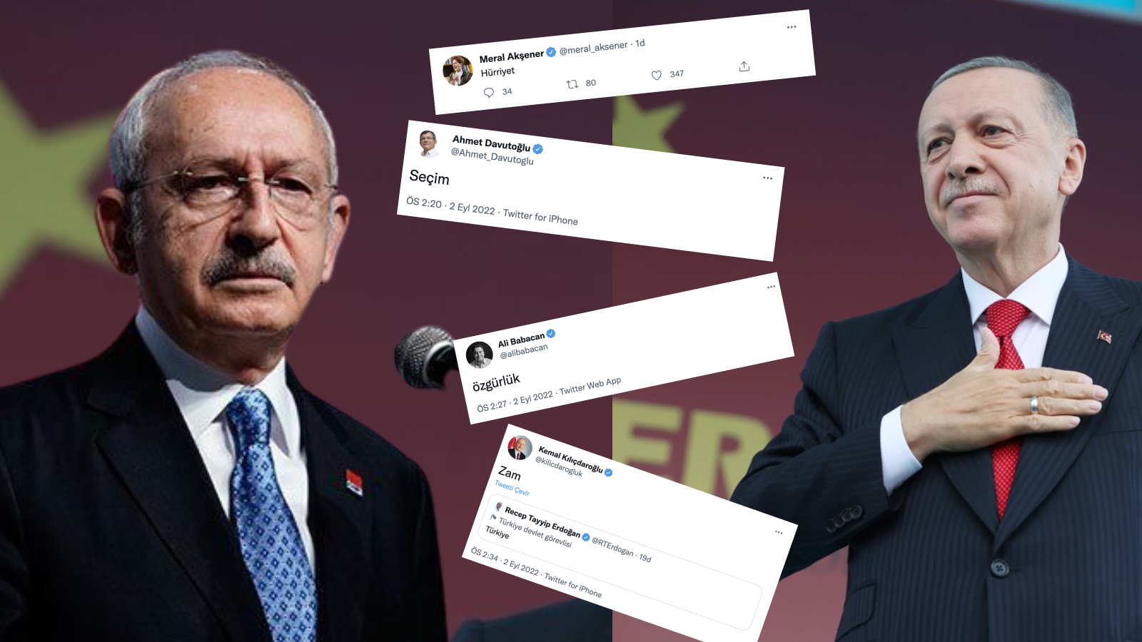 الرئيس أردوغان شارك في الهاشتاج بكتابة كلمة “تركيا”، ليرد عليه زعيم المعارضة ورئيس حزب الشعب الجمهوري، كمال كيليتشدارأوغلو، بكلمة “غلاء”.