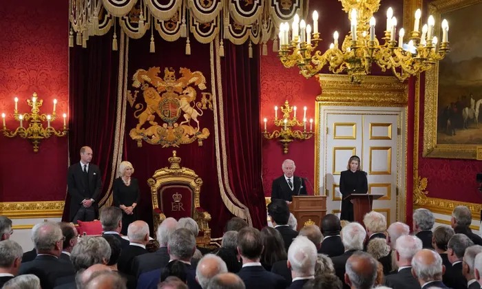 قال الملك تشارلز الثالث: “إنني على دراية تامة بالواجبات والمسؤوليات الجسيمة التي أوكلت إلي من خلال هذا الإرث العظيم. وسأحاول اتباع النموذج الملهم الذي قدمته (الملكة إليزابيث الثانية) لدعم الدستور والحكومة.”