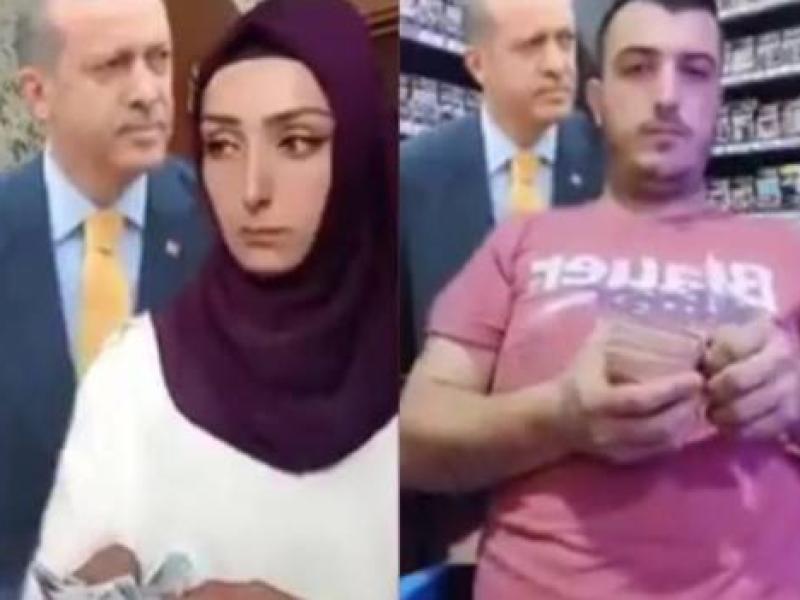 يظهر في الفيديو الذي حمل عنوان “إخفاء النقود”، مواطنون يخفون النقود كلما ظهرت في الخلفية صورة الرئيس أردوغان.