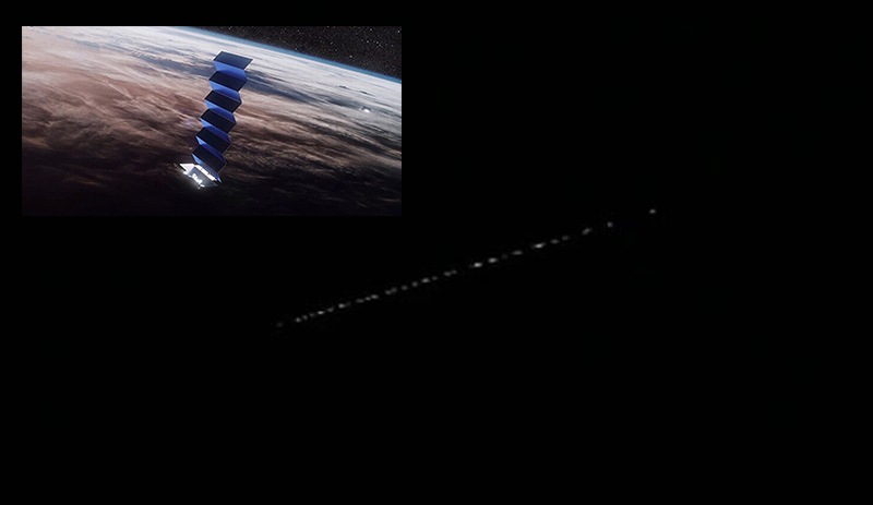 ظهرت الأقمار الصناعية في السماء على شكل خطوط من الضوء حوالي الساعة الثامنة مساءً.
