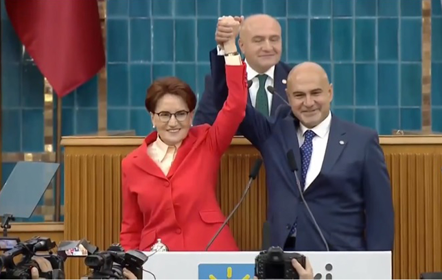 وقامت رئيسة حزب الخير، ميرال أكشنار صاحبة لقب “المراة الحديدية”، بتقليد شوماز شارة الحزب خلال اجتماع الكتلة البرلمانية.