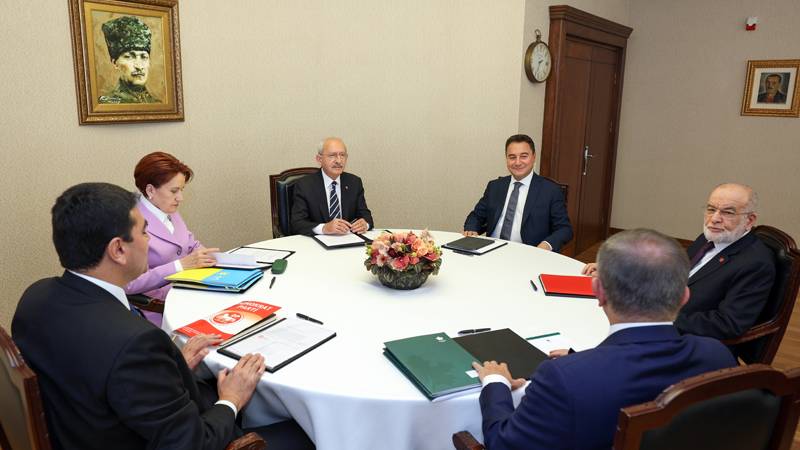 يضم التحالف السداسي الذي يطلق عليه “طاولة الستة” كل من رئيس حزب الشعب الجمهوري، كمال كيليجدار أوغلو، ورئيسة حزب الجيد، ميرال آكشنار، ورئيس حزب المستقبل، أحمد داود أوغلو، ورئيس حزب الديمقراطية والتقدم، علي باباجان، ورئيس حزب السعادة، تمل كره مولا أوغلو، ورئيس الحزب الديمقراطي، جولتكين أويصال.
