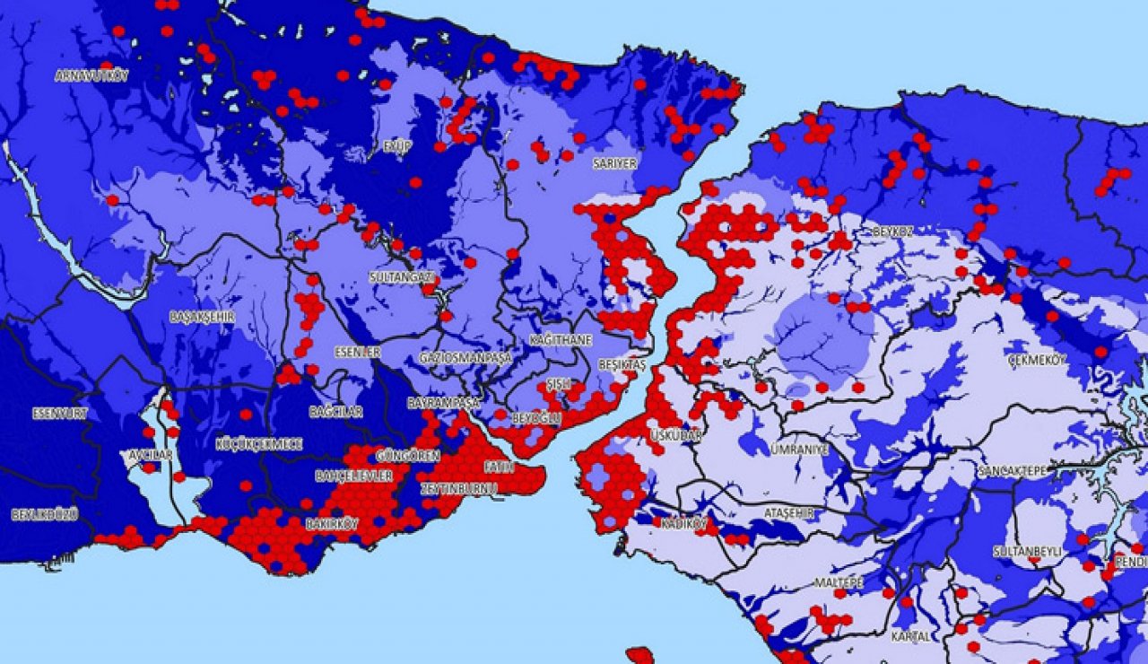 وتتزايد خطورة الأحياء من حيث قربها لخطوط الصدع، حيث تتصدر أحياء أفجيلار وكوتشوك شكمجه وبكركوي وبيلك دوزو وجونجوران وزيتين بورنو وبهشلي أفلار وفاتح القائمة بالجانب الأوروبي، في حين تتصدر أحياء بنديك وسلطان بيلي وتوزلا وجزر الأميرات القائمة بالجانب الاسيوي للمدينة.