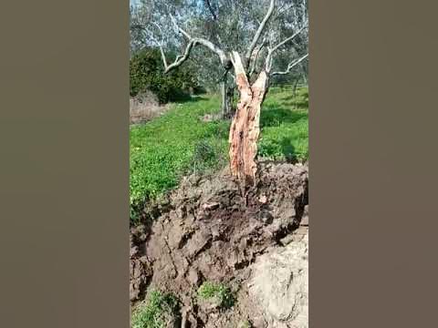 شاهد.. الزلزال يشطر شجرة زيتون إلى قطعتين ويفصلهما عن بعضهما 15 مترًا