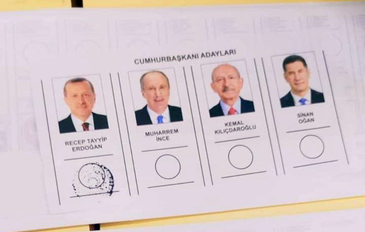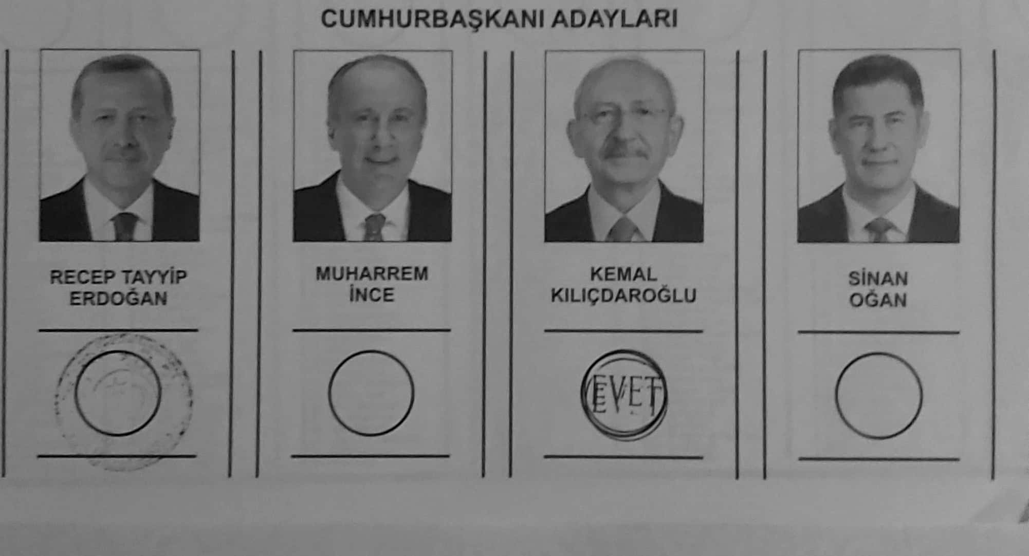 ويظهر ختم المجلس الأعلى للانتخابات خلف بطاقة التصويت، تحت اسم الرئيس أردوغان، مما قد يظهر أنه تم التصويت له، حيث يتشابه ختم المجلس مع الختم المخصص للتصويت.