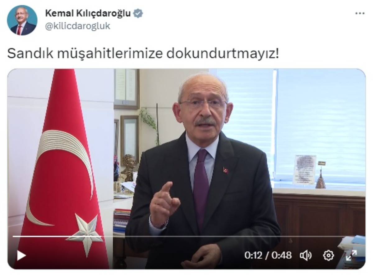 وذكر كيليجدار أوغلو أن السلطات فعلت كل ما يمكنها لمنع تواصله مع الناخبين وأن السلطات تستخدم جميع إمكانات الدولة بشكل غير قانوني قائلًا: “أريد منكم ألا تتركوا مراقبي اللجان بمفردهم، لأنهم سيحاولون ممارسة الضغوط عليهم. لنتكاتف ونستخدم حقنا الدستوري. دعونا نرابط على صناديق الاقتراع التي سنصوت بها ونتابع بأنفسنا أعمال الفرز. لم يتبقّ سوى القليل وسيأتي كل محب للوطن”.