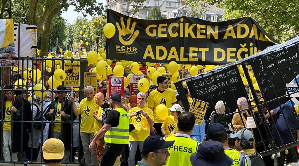 أنقرة (زمان التركية) – تجمع آلاف المحتجين السلميين أمام المحكمة الأوروبية لحقوق الإنسان والمجلس الأوروبي في مدينة ستراسبورغ الفرنسية، للتنديد ببطء إجراءات المحكمة ونهجها تجاه الانتهاكات الحقوقية لضحايا القمع في تركيا.