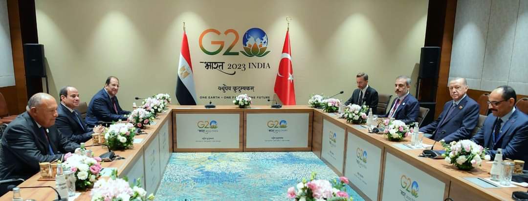ويحضر كل من السيسي وأردوغان، القمة الـ 18 لمجموعة العشرين في نيودلهي، ويعتبر هذا هو اللقاء الثاني بين أردوغان والسيسي بعد اللقاء الذي جمعهما في الدوحة خلال كأس العالم.