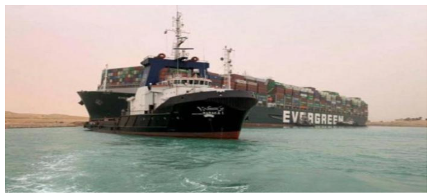 شاحنة الحاويات العملاقة “إيفر جرين” تعطل الملاحة بقناة السويس (مارس 2021)