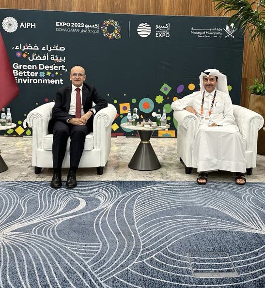 كما ذكر شيمشك أنهم التقوا بوزير المالية القطري علي بن أحمد الكواري في قطر، التي كانت محطته الثانية، و”التقينا بالأمين العام لإكسبو الدوحة 2023 محمد علي الكواري وتلقينا معلومات عن التنظيم، وقمنا بزيارة مركز تركيا الذي يقع في أرض المعارض وتم بناؤه في وقت قصير للغاية، لقد كان مثيرًا للإعجاب للغاية”.