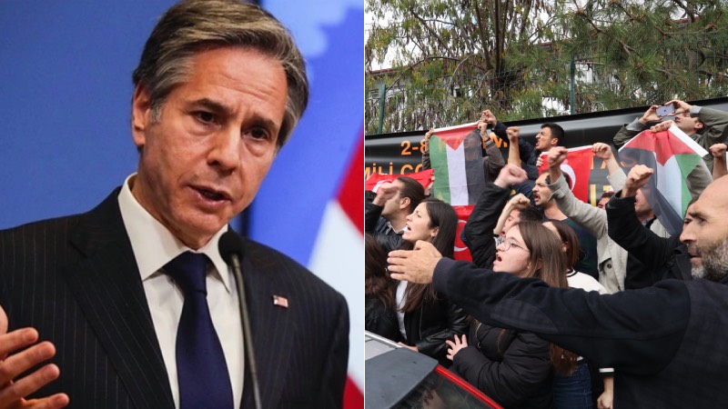 وتظاهر أعضاء اتحاد الشباب التركي بالقرب من مبنى وزارة الخارجية للاحتجاج، ورفع المحتجون الأعلام الفلسطينية والتركية وهتفوا بشعار “القاتل بلينكن، اخرج من تركيا”. وتدخلت الشرطة لفض المتظاهرين.