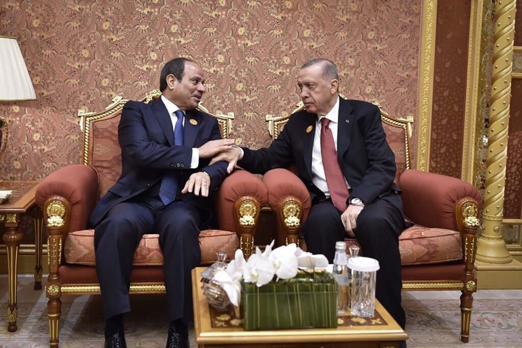 وتحاول أنقرة إصلاح علاقاتها المقطوعة مع الرئيس المصري عبد الفتاح السيسي منذ عام 2020، ومع تصافح الزعيمين في قطر عام 2022، تسارعت عملية التطبيع بين البلدين، وفي يوليو/تموز الماضي، أعاد البلدان سفيريهما المسحوبين سابقًا إلى أنقرة والقاهرة.
