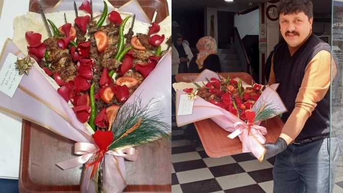 وقال إركان بوز، الذي يدير محل جزارة في المنطقة منذ 25 عاما، إنه فوجئ بطلب السيدة التي أرادت الحصول على “باقة مشويات” معدة لعيد الحب.