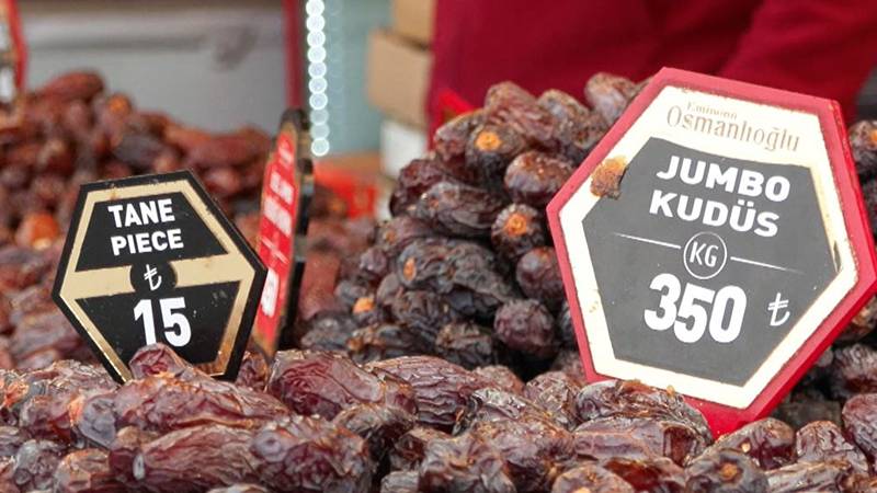 وقال مراد أوزومكو، الذي يعمل صاحب متجر في بازار التوابل منذ 20 عاماً، “سعر الكيلو من تمر المدينة المنورة 480 ليرة، وبتراوح سعر التمرة بين 10 ليرات و15 ليرة، حتى أنها ترتفع إلى 20 ليرة”.