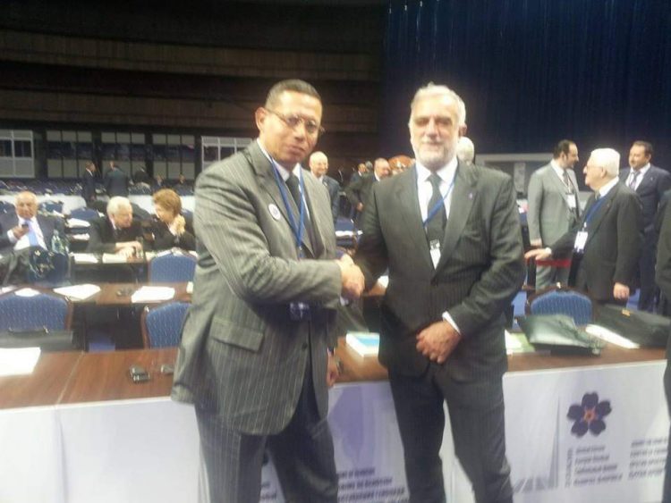 أيمن سلامة مع المدعي العام الأول للمحكمة الجنائية الدولية او كامبو