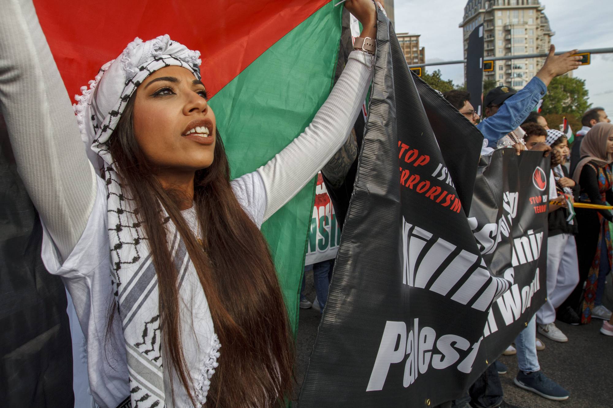 05 November 2023, US, Dallas: Protesters take part in a pro-Palestine rally. Photo: Jaime Carrero/ZUMA Press Wire/dpa